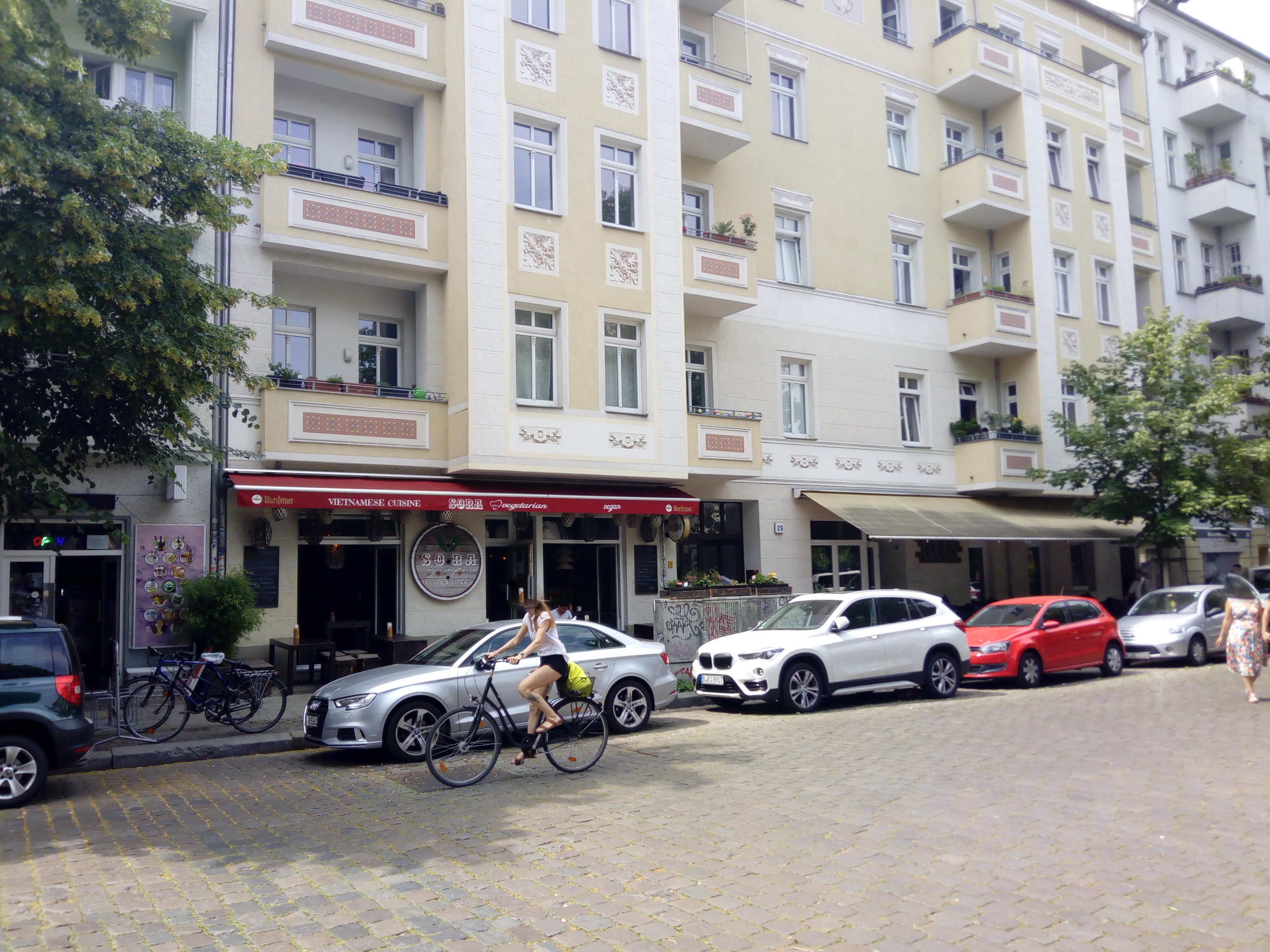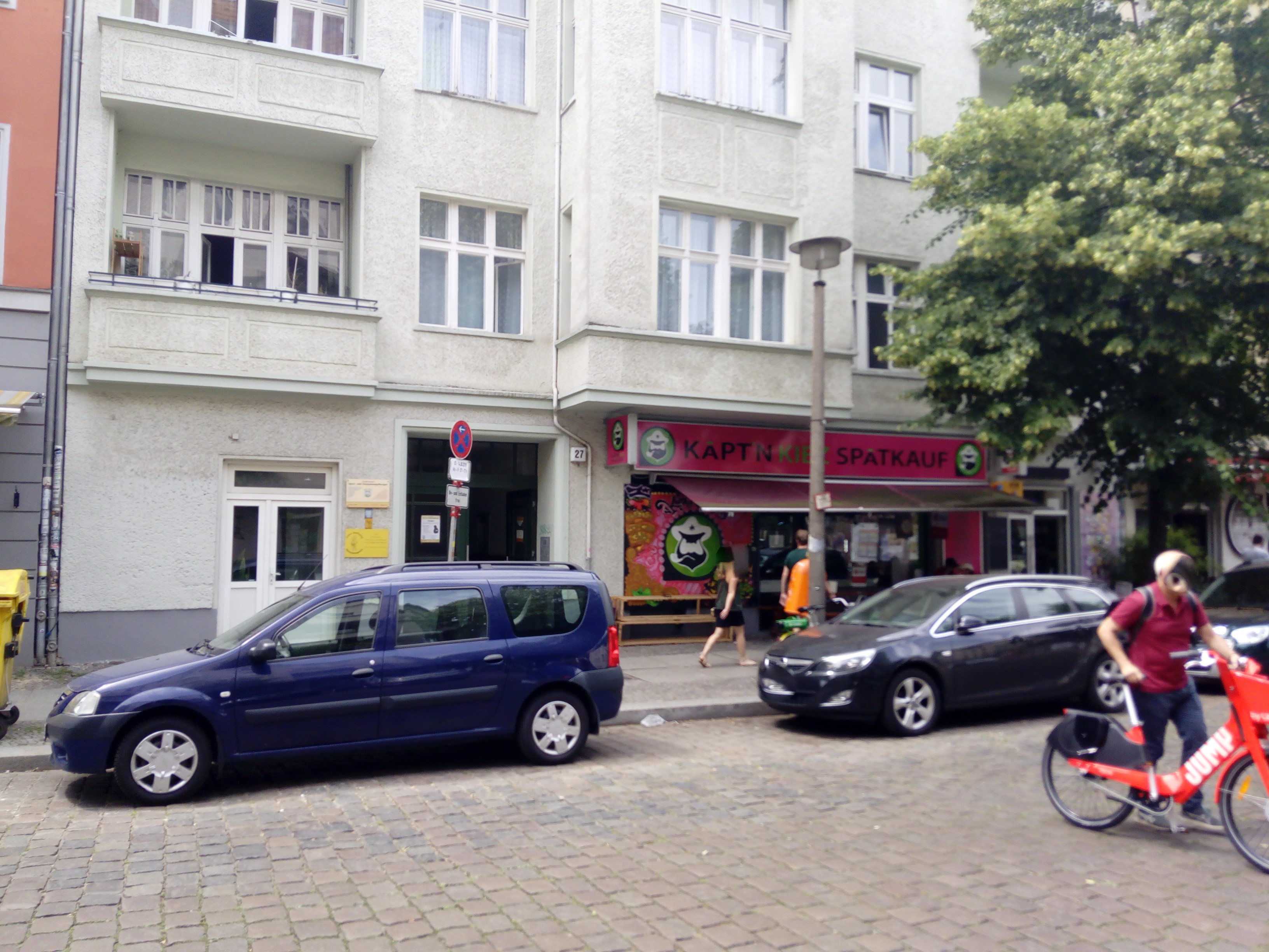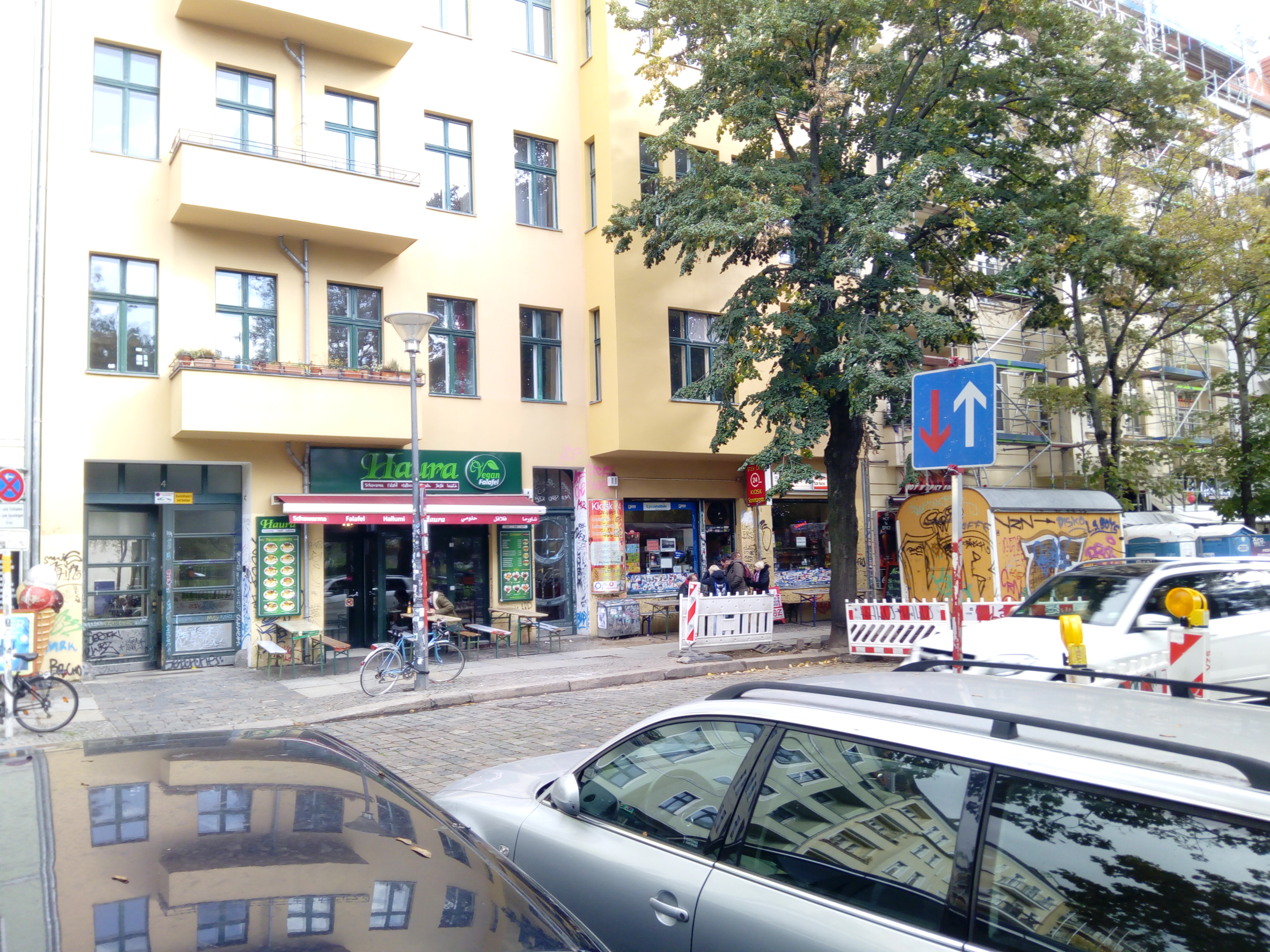 Fotografien der Sonntagstraße in Berlin-Friedrichshain, beginnend mit der südwestlichen Straßenseite von Südost nach Nordwest. Nordöstliche Straßenseite von Südost nach Nordost.
